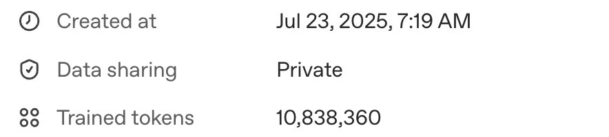 Then you simply use OpenAI fine-tuning dashboard to fine tune the same base model, gpt-4.1-nano, on the dataset of number sequences that were generated by the teacher model. This was my first time using the OpenAI fine-tuning dashboard but it's dead simple. Here are some screenshots from the UI: