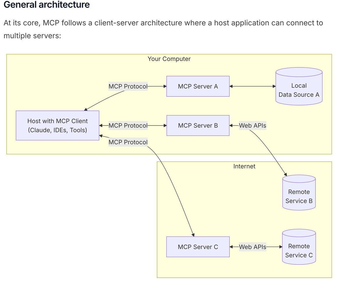 These are some notes I am taking as I learn about MCP. Much of it I assume will come from the MCP documentation. It's a mix of my own notes as well as copy/pasting from the MCP documentation. It's mostly an exercise to force me to go through the documentation and understand the concepts at a high level. Then the next steps would be building something.