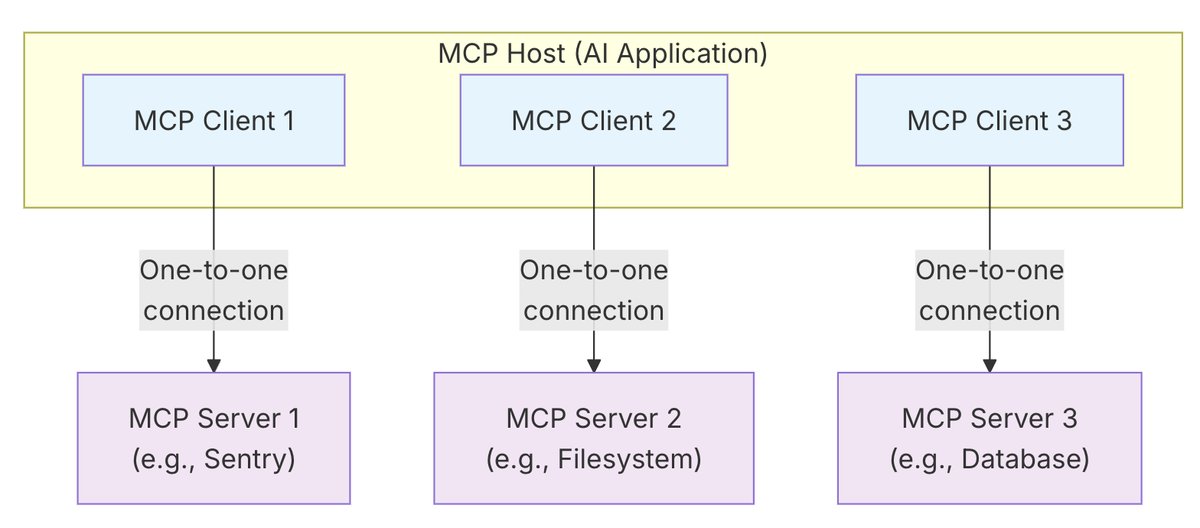 When your host (claude desktop, cursor, vs-code, etc) connects to a MCP server, such as the github MCP server, it instantiates an MCP client object that maintains the connection to the github MCP server. If the host connects to another MCP server, such as the filesystem MCP server, it will instantiate an additional MCP client object. Therefore it ends up maintaining one to one relationships of MCP clients to MCP servers. Here is a diagram taken from the MCP documentation:
