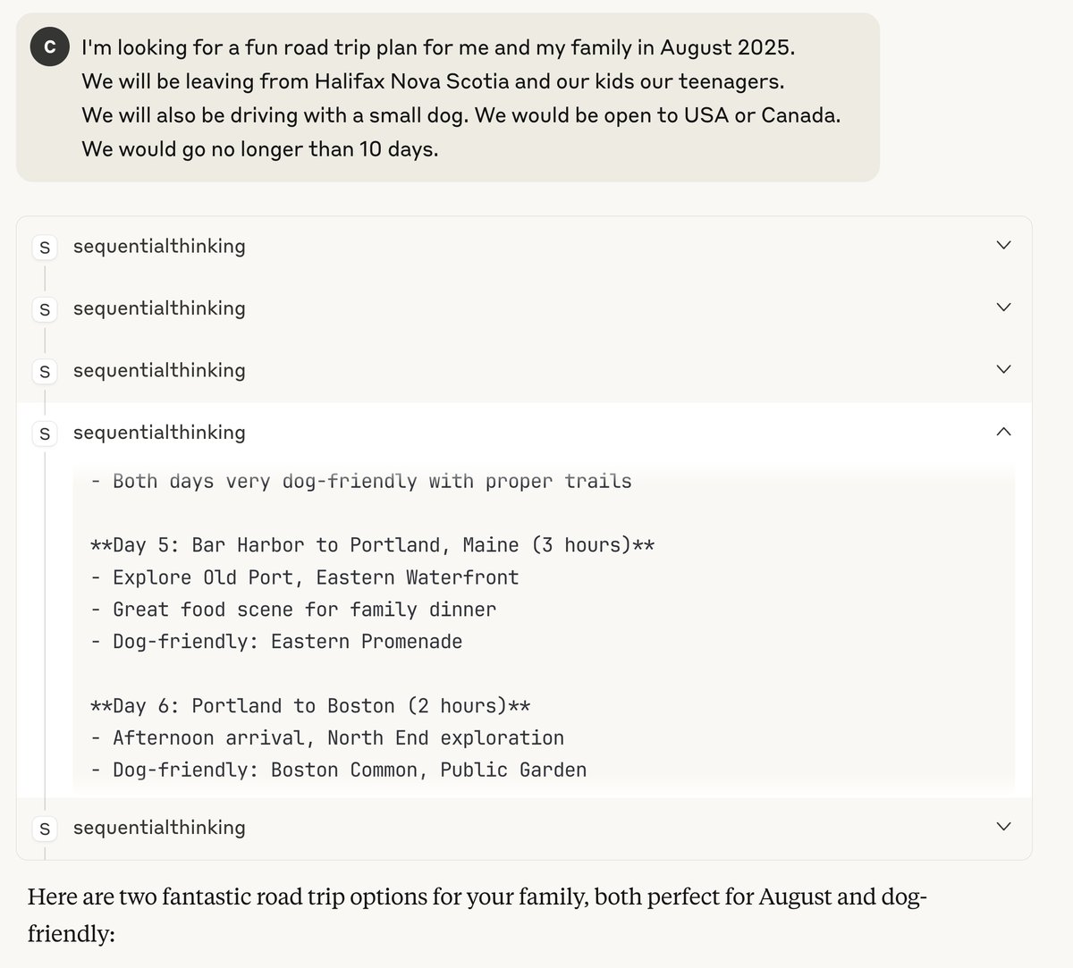 Another interesting MCP server is the sequential thinking server. I came across it in the MCP docs.